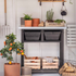 This potting table is designed to enhance your gardening experience with its practical features and sturdy construction. It offers a spacious work surface made of galvanised sheet metal, ideal for potting plants and other gardening tasks. The table includes two drawers, one specifically designed to store loose soil, keeping your workspace organised. Additionally, it features hooks on each side - four movable S-hooks on the left and two fixed hooks on the right - for hanging tools and accessories. A lower shelf provides ample space for larger items such as watering cans, planters, or trays. Crafted from black-stained spruce, the bench is weatherproof and suitable for both indoor and outdoor use. Assembly is not required, allowing for immediate use upon delivery.